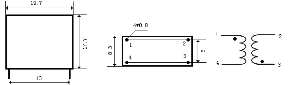 二、外形图、安装尺寸和线圈图: