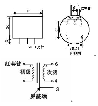 引针4、6为次级,引针1与初级套红色套管的侧引线相连,引针2与初级不套红色套管的侧引线相连,引针3为屏蔽。