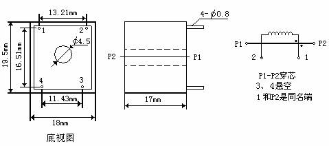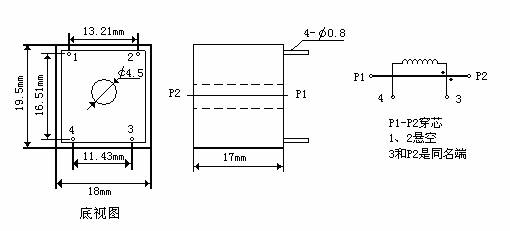 三、外形图、安装尺寸和线圈图: 1、 HKCT32C (输出绕组引脚间距窄)