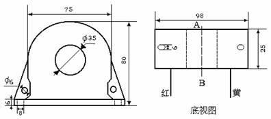 五、使用说明: HKCT91M大电流精密互感器:穿心母线A端与黄色引线为同名端。引线长度可根据用户要求设计。 |