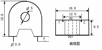 TA1立式穿芯微型精密交流电流互感器 一、特点: 1、立式穿芯印刷线路板直接焊接安装、外形美观; 2、体积小,精度高;全封闭,机械和耐环境性能好,电压隔离能力强,安全可靠。 二、外形图、安装尺寸图: