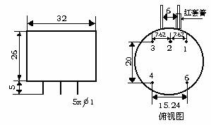 五、使用说明: HKCT52QE系列暂态保护用电流互感器:卧式引针,初级侧引线方式。初级套红色套管的侧引线与引针6为同 名端。引针4、6为次级,引针1与初级套红色套管的侧引线相连,引针2与初级不套红色套管的侧引线相连, 引针3为屏蔽。初级引线长度可根据用户要求设计。 |